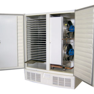 Контроль температуры, управление основными узлами холодильной системы осуществляется электронным пультом на безе контроллеров Eliwell или Danfoss. Он находится на наружной поверхности камеры, указывает температуру в помещении, сигнализирует о аварийных ситуациях и может собирать и передавать данные о работе оборудования через интернет. Холодильное оборудование требует сетевого напряжения, равного 380 В. Оно является оптимальным и обеспечивает бесперебойность работы.