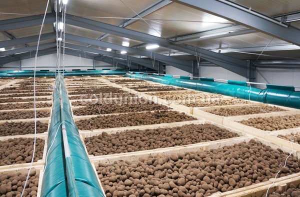 Качественная вентиляция картофелехранилища важна на протяжении всего периода хранения картофеля, что может достигать шести месяцев.В картофелехранилищах система активной вентиляции, в том числе с использованием искусственного холода, нужна для поддержания требуемого температурно-влажностного режима.